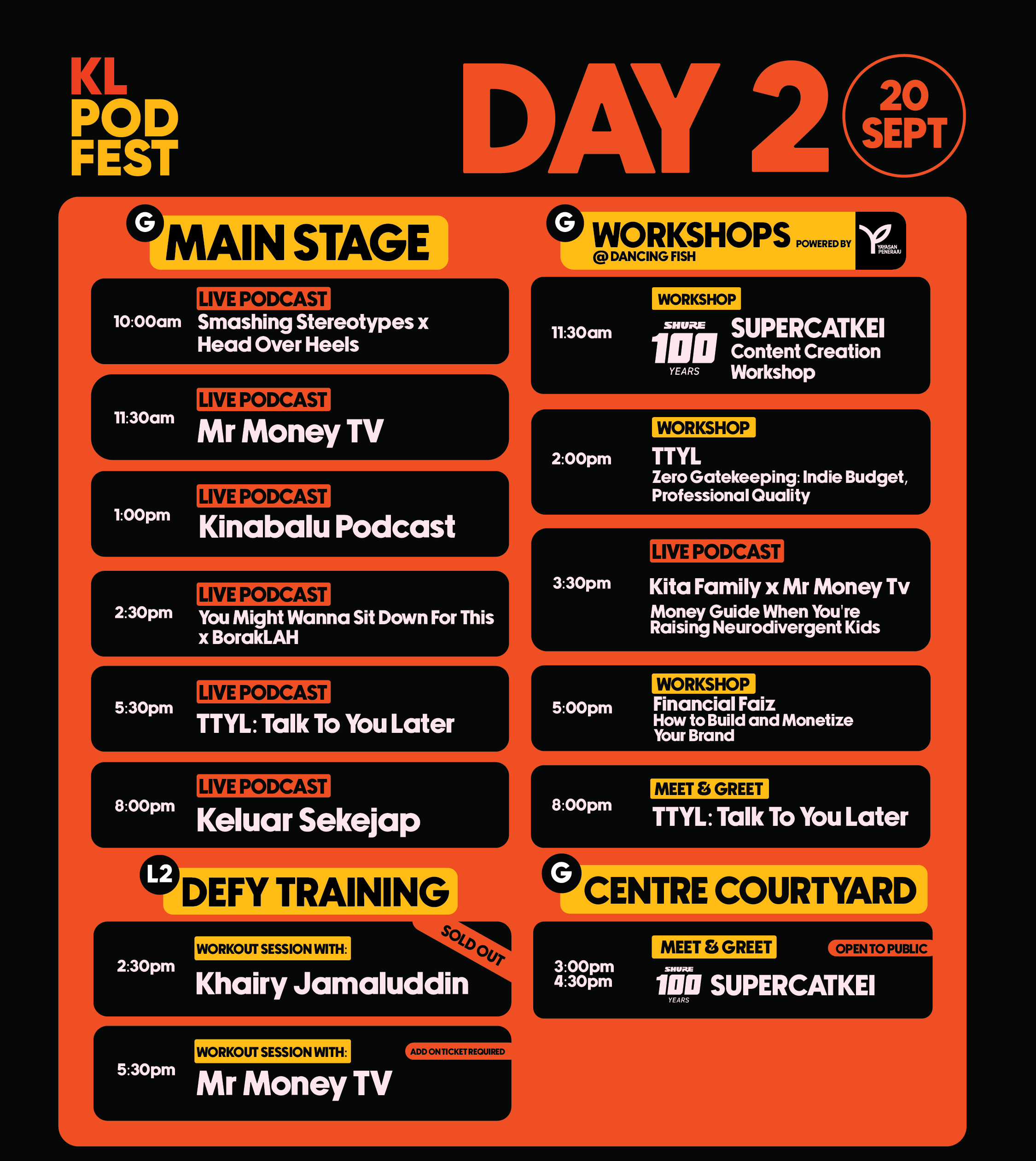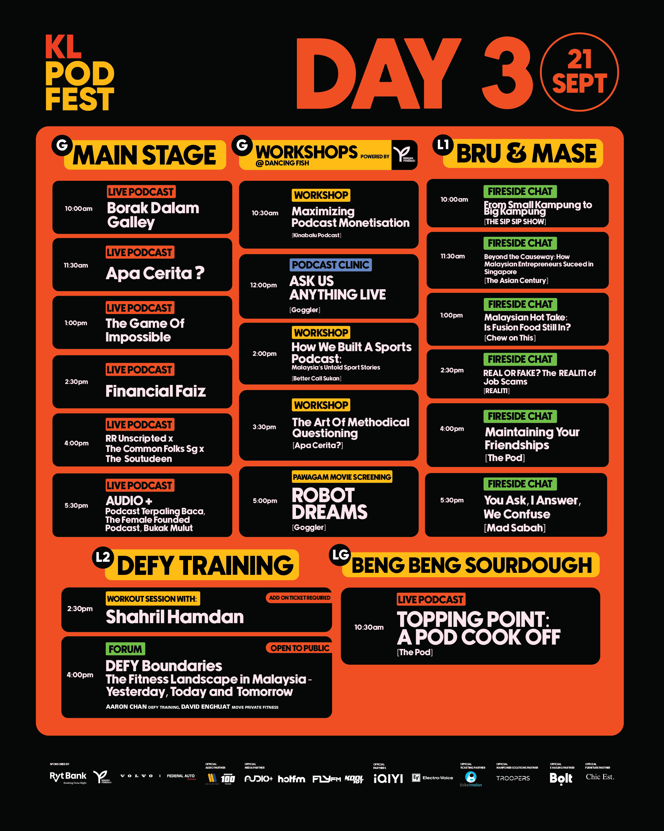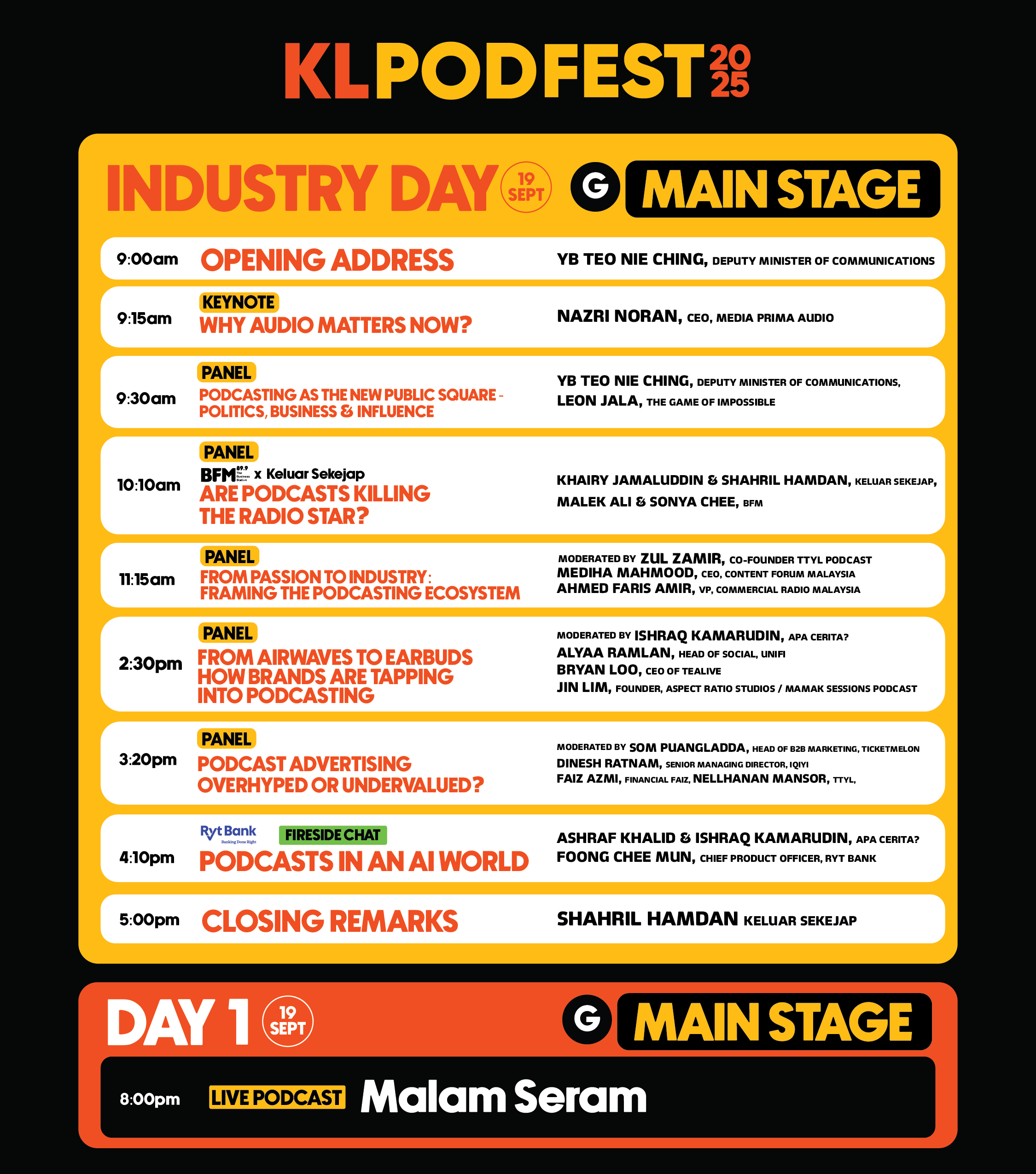 Malaysia’s biggest podcast festival returns for its second year, bringing together the voices and ideas shaping today’s podcasting culture. For 3 epic days, we’re going beyond the pod with your favorite podcasters, immersive live shows, fan meetups, hands-on workshops, and wellness vibes – bringing you closer to the creators you love!